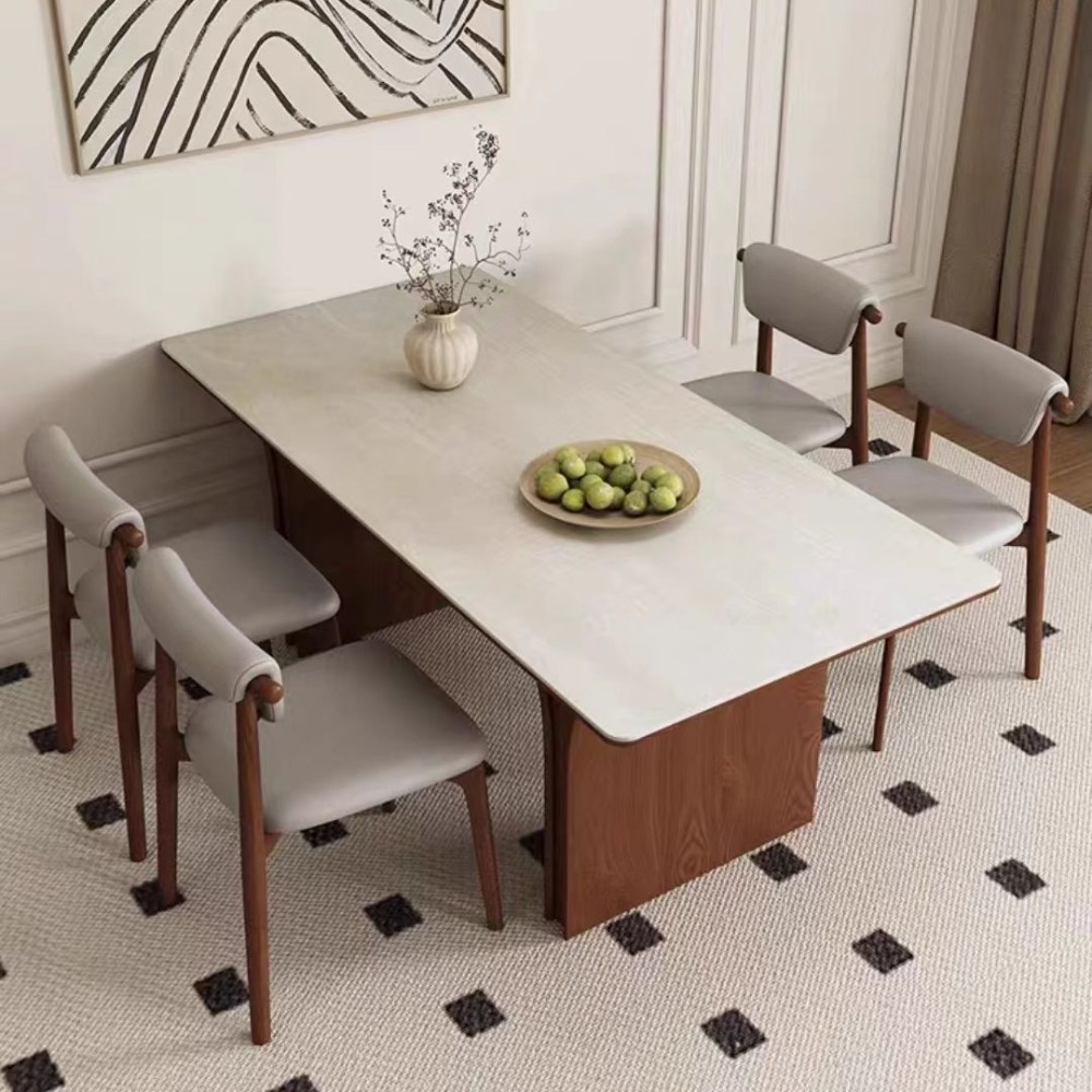 產品材質:實木白蠟木桌腳+耐熱耐刮耐磨岩板石材桌面