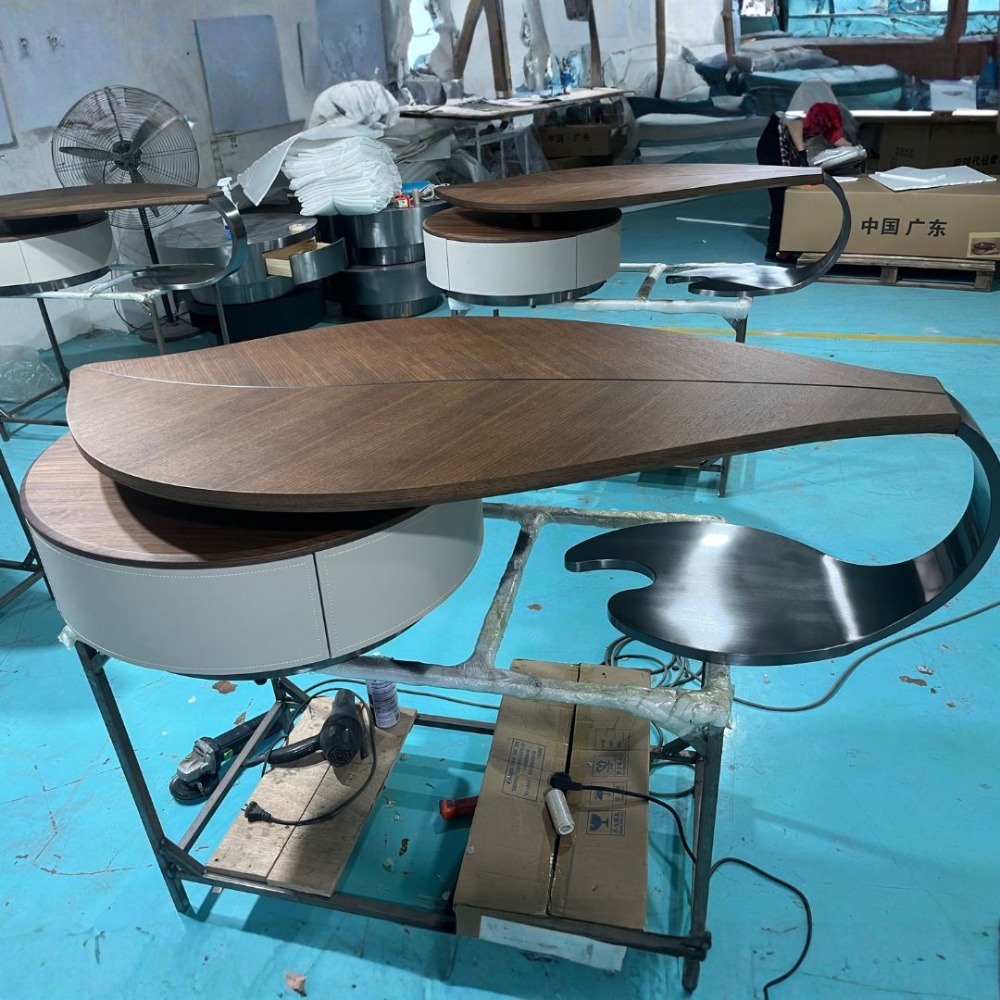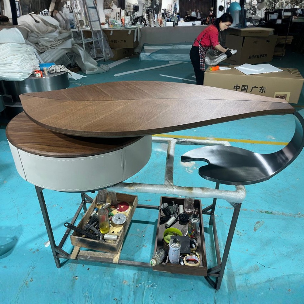 • 不鏽鋼真空電鍍黑鈦底座+馬鞍皮櫃體+實木木紋檯面(詳情客服一對一確認溝通)
