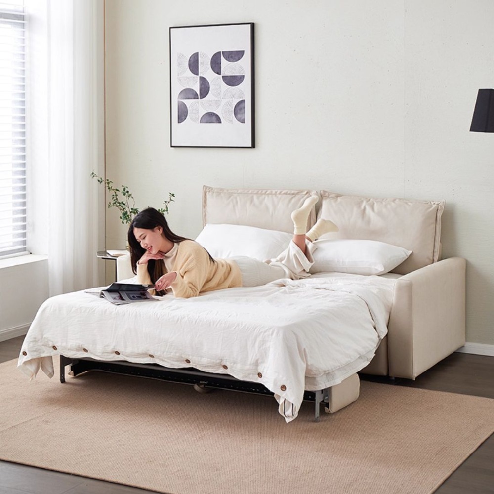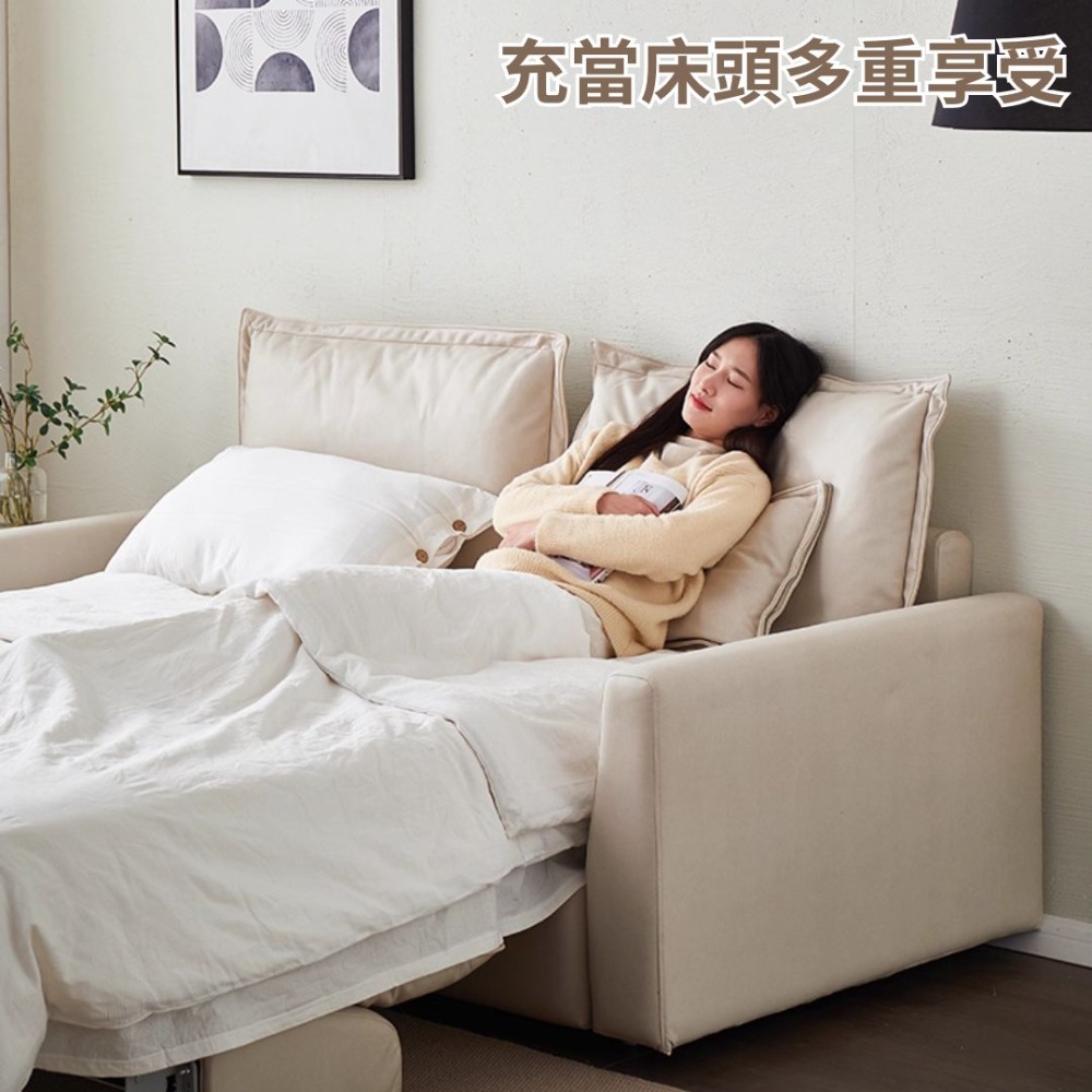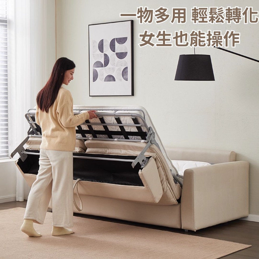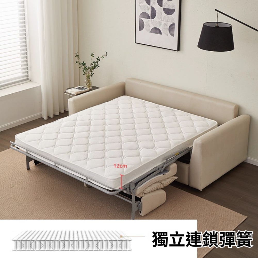 NICO| 坐墊靠包的含獨立彈簧筒床的折疊沙發床 坐墊羽絨填充包裹感強不易塌陷回彈性好 四段承托有效放鬆你的身體 可折疊彈簧獨立筒床墊透氣性好 一折式鋼架結構可沉重500KG人體重量 無故障 無異響 開啟方便一秒變床 女生也可獨立完成