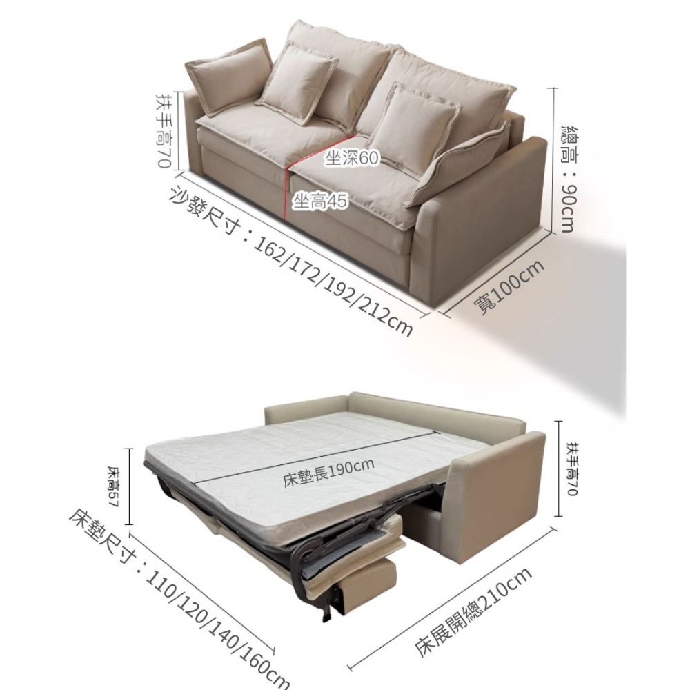 沙發:212*100*90cm 展開:212*210*70cm 床墊:160*190*12cm
