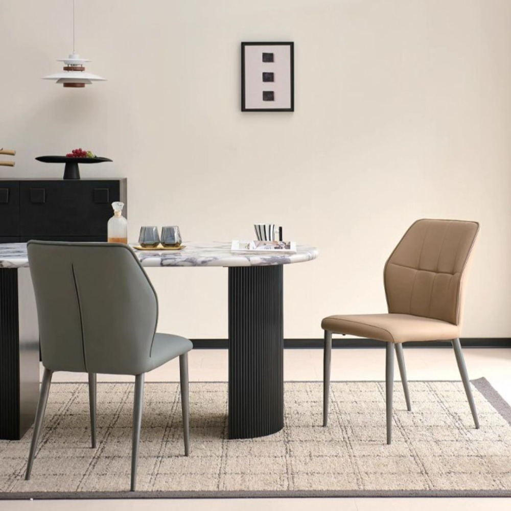 NICO|輕奢餐椅 環抱式靠背設計沉浸式包裹感 精選超纖皮革透氣性好久坐不悶熱 全手工縫製針腳細膩 加粗加厚金屬椅腳穩固抓地不搖晃