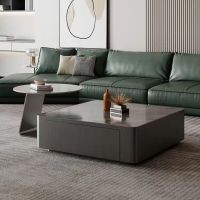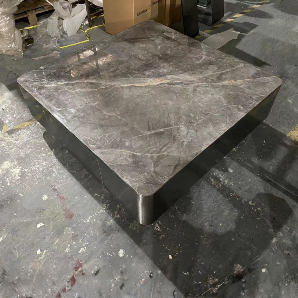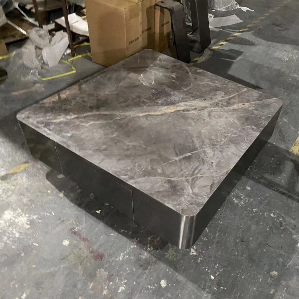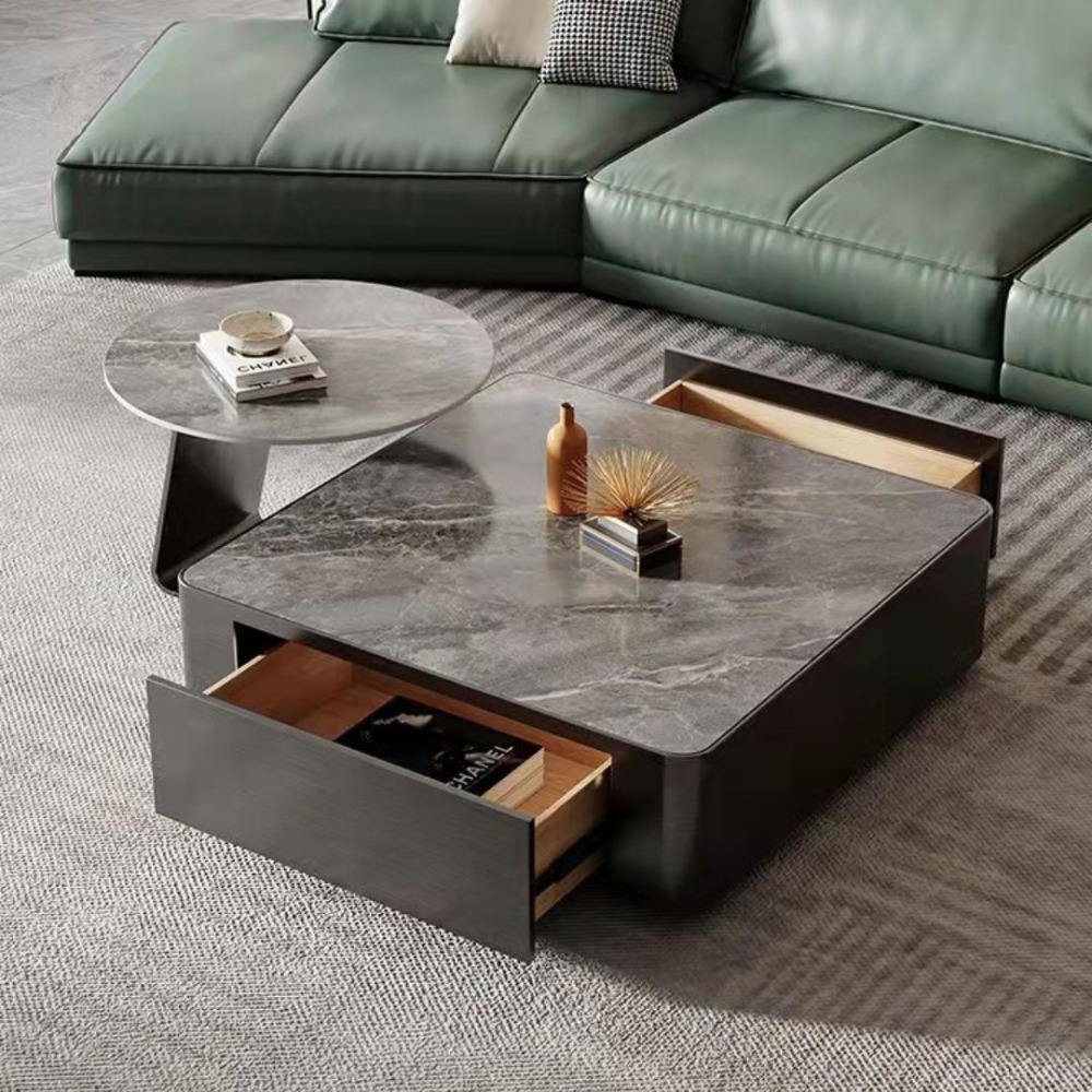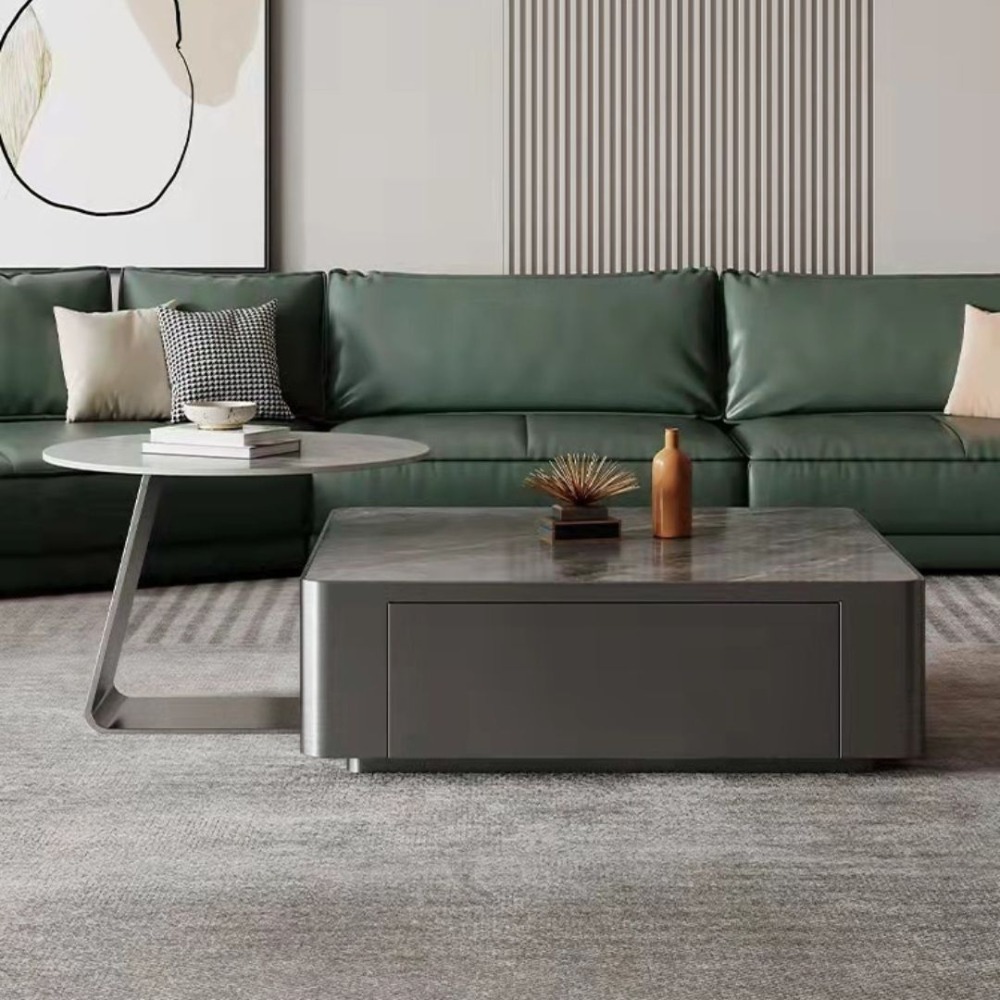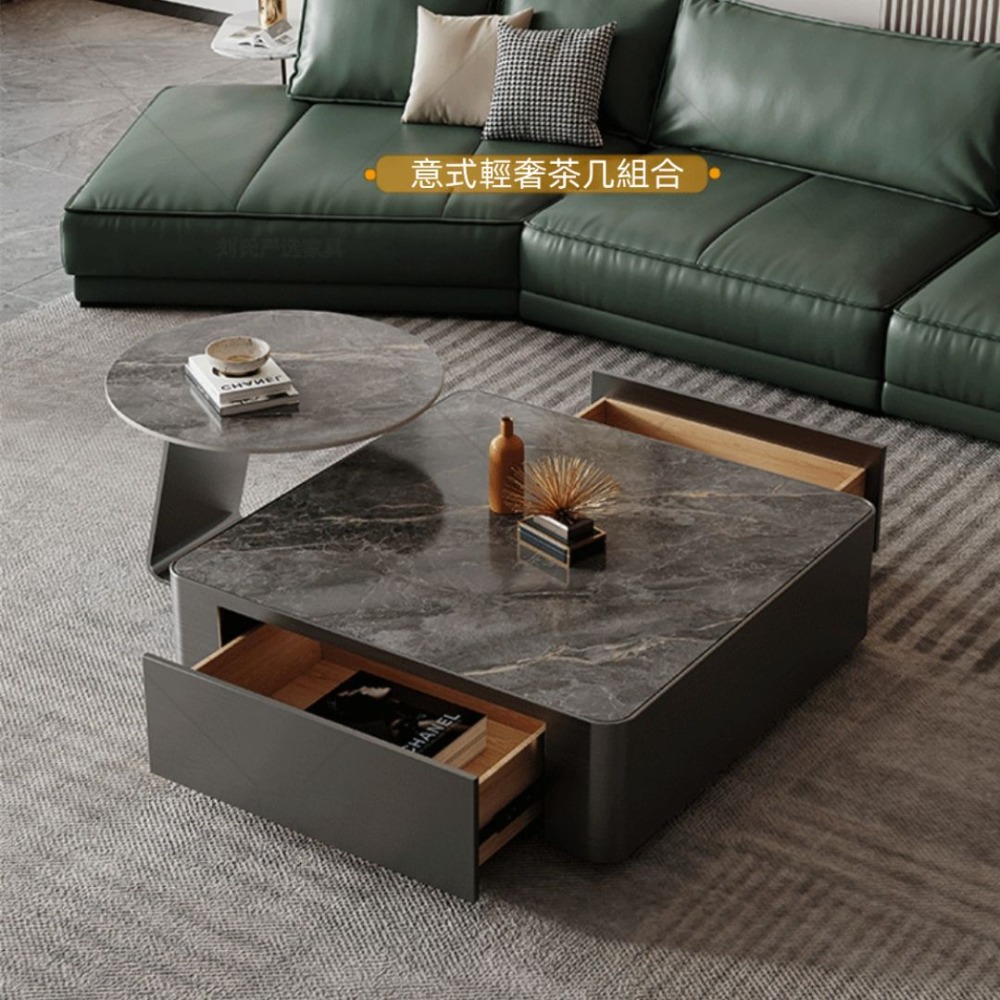NICO|不鏽鋼方形茶几組合 亮光岩石桌面質感細膩防刮防染好打理 整塊石板無縫銜接穩固耐用 不鏽鋼灰鈦真空電鍍底座堅固不生鏽 實木抽屜紋理清晰收納有序 每個細節都展現極簡高級感 讓客廳瞬間提升格調 打造專屬你的高品味生活