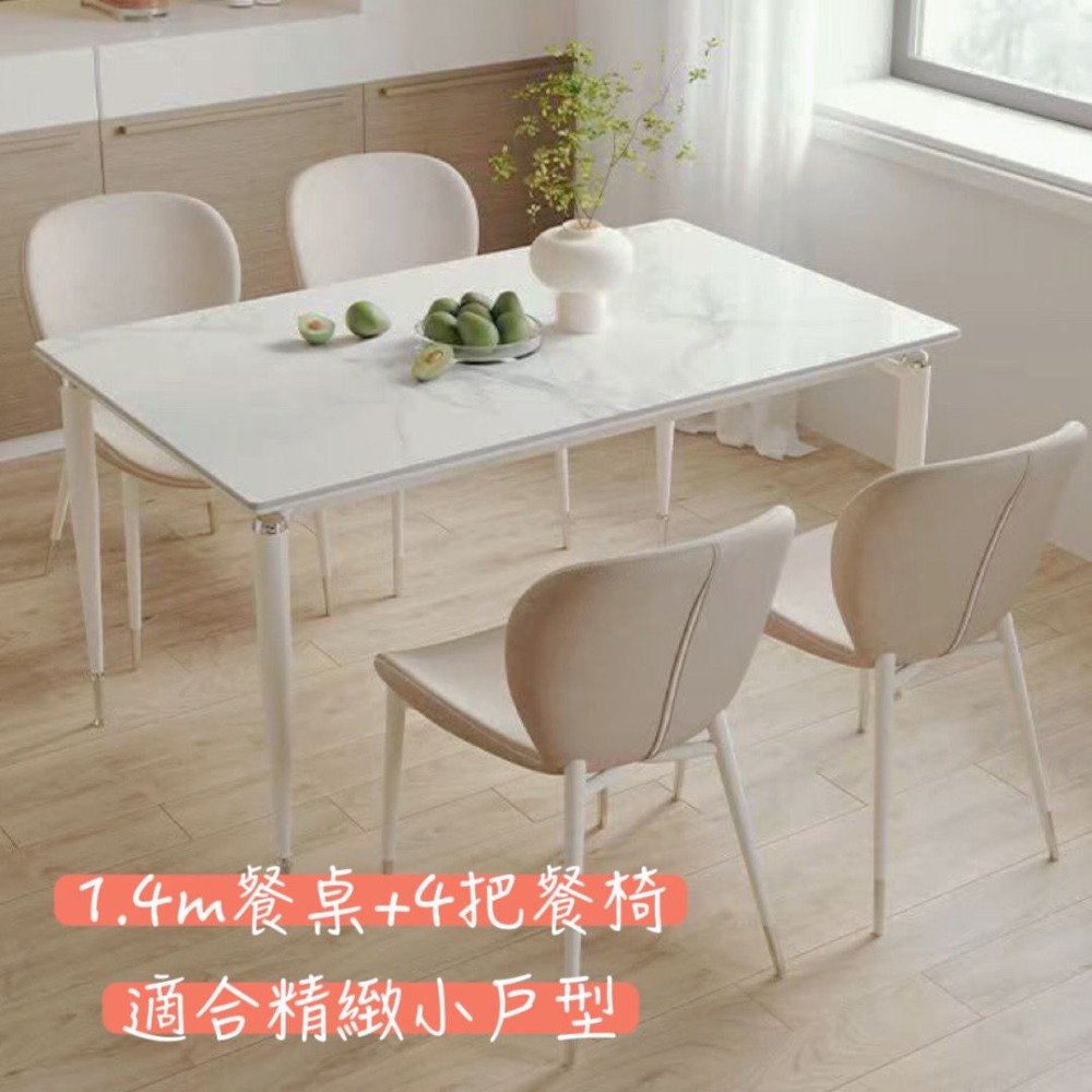 • 尺寸:140*80*75cm(米色桌腳+桌面雙面岩板/雙面岩板花紋:亮面意大利灰+亮面雪花白)