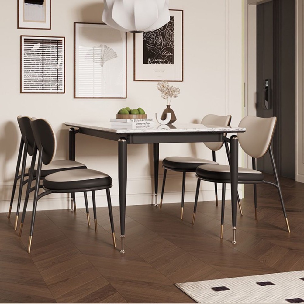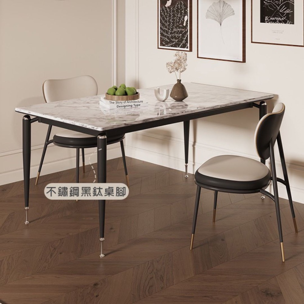 NICO|【品質保證/換季活動】法式復古餐桌 不鏽鋼斯諾克桌腳造型纖長桌腳不顯笨重 桌面石材採用耐磨耐熱耐刮岩板 可選雙面岩板花紋或單面花紋 讓餐廳更顯優雅質感