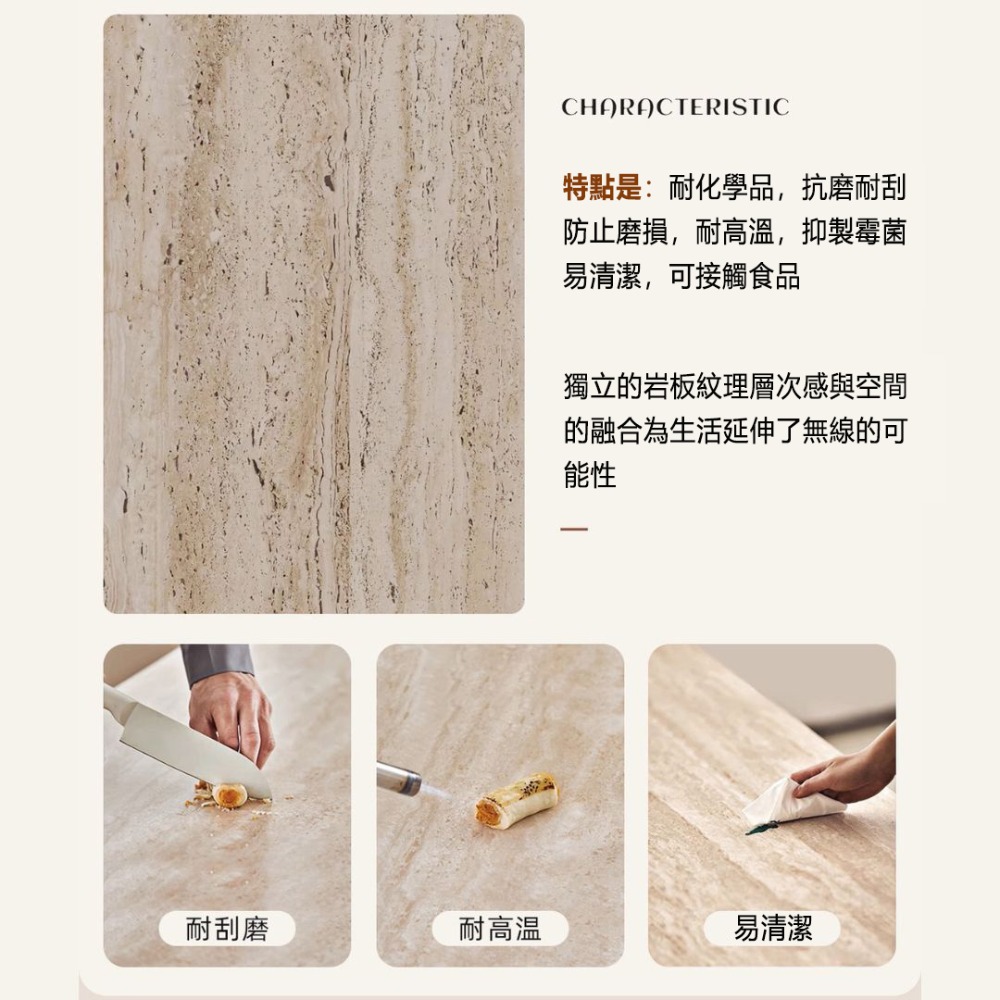 NICO|【超值優惠】岩板餐桌 長桌 餐桌 會客桌 餐廳桌 岩板桌面 加厚全復合底板 耐用不破損 加厚不鏽鋼桌腳 穩固性好 承重平穩 牢固不搖晃 防潮不生鏽 桌腳空間寬大 搭配不同餐椅 用餐更自在