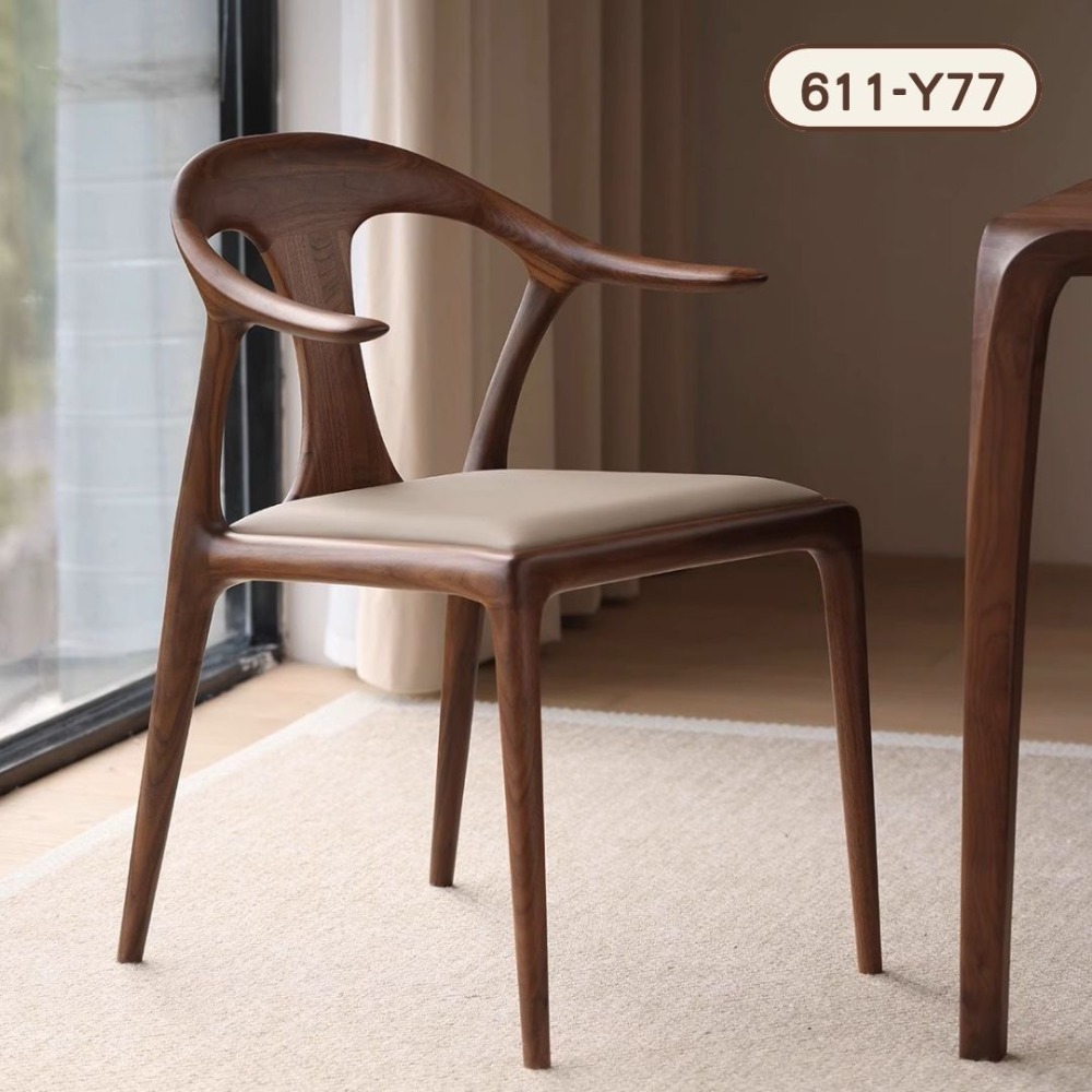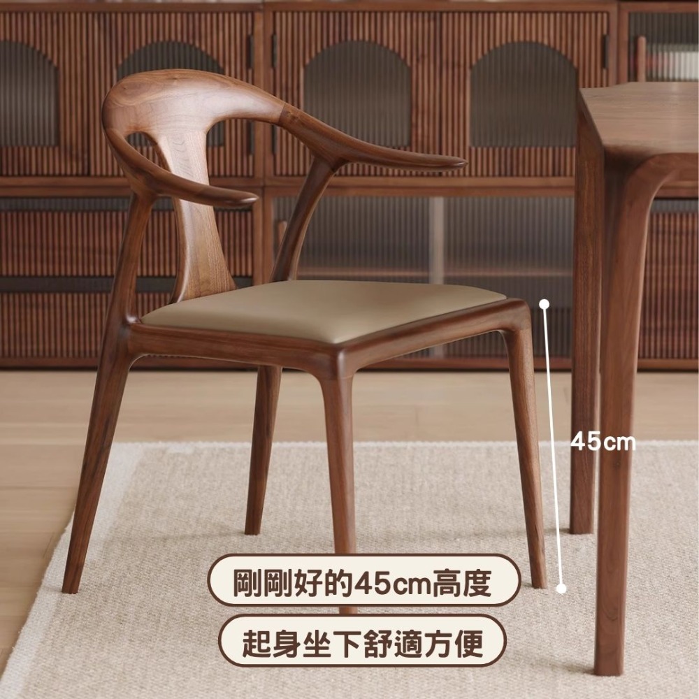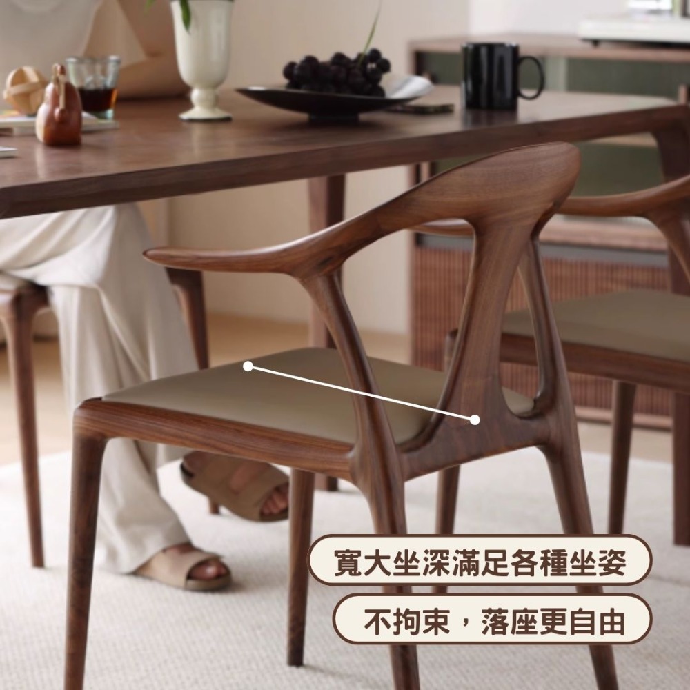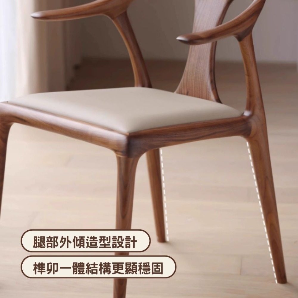 NICO|尋找一張能坐一整天的餐椅嗎?尼可家具鴨嘴椅,採用北美黑胡桃白蠟木製作,結合獨特的鴨嘴流線扶手與人體工學背脊貼合設計,45cm 標準座高,無論是餐敘還是閱讀都能自在舒展。榫卯結構穩固耐用,讓小宅也能展現豪宅質感。