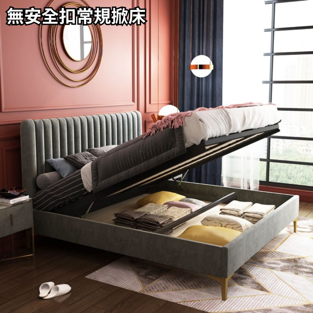 產品尺寸:可搭配5呎床墊/可搭配6呎床墊/可做常規掀床無安全扣/可定制帶安全扣MIT掀床(詳情客服一對一確認溝通)