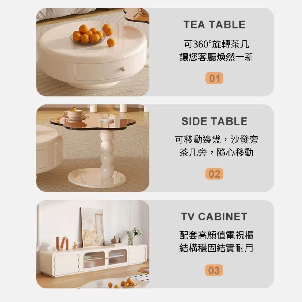 品名:360°可旋轉奶油風茶几組合 443-918