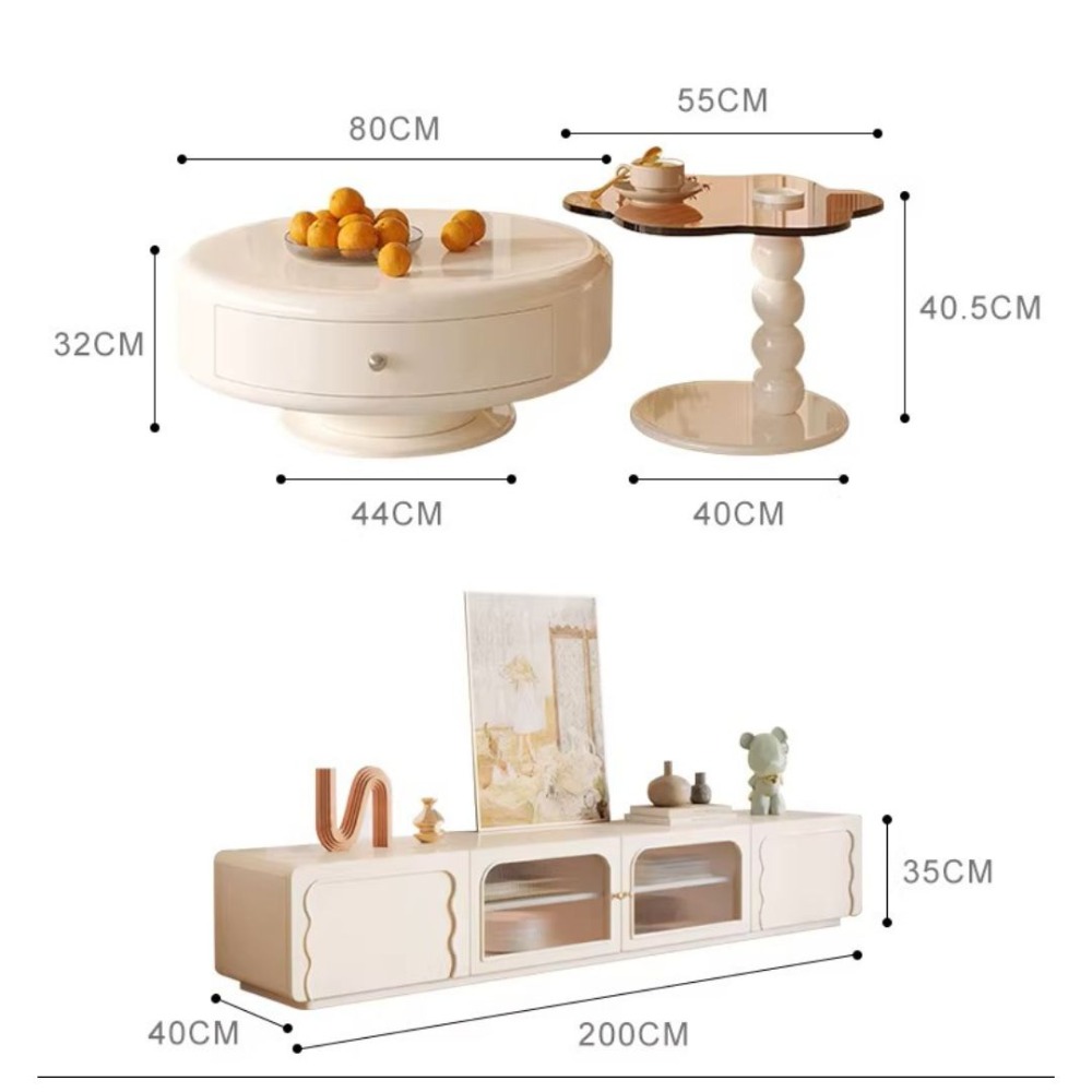 360°可旋轉奶油風茶几組合 443-918