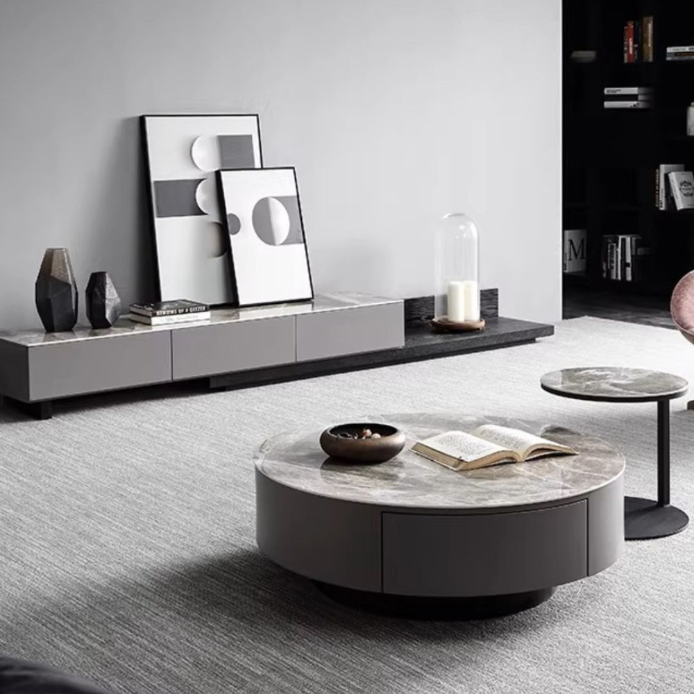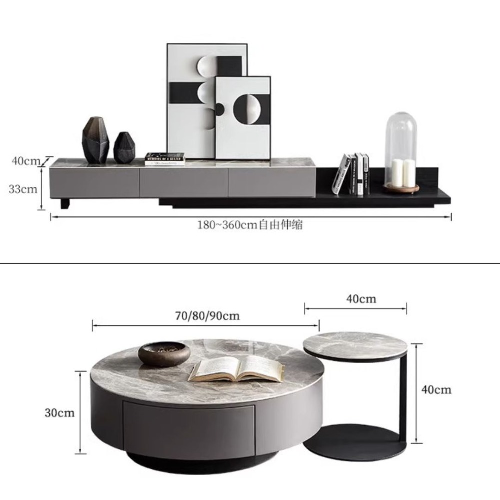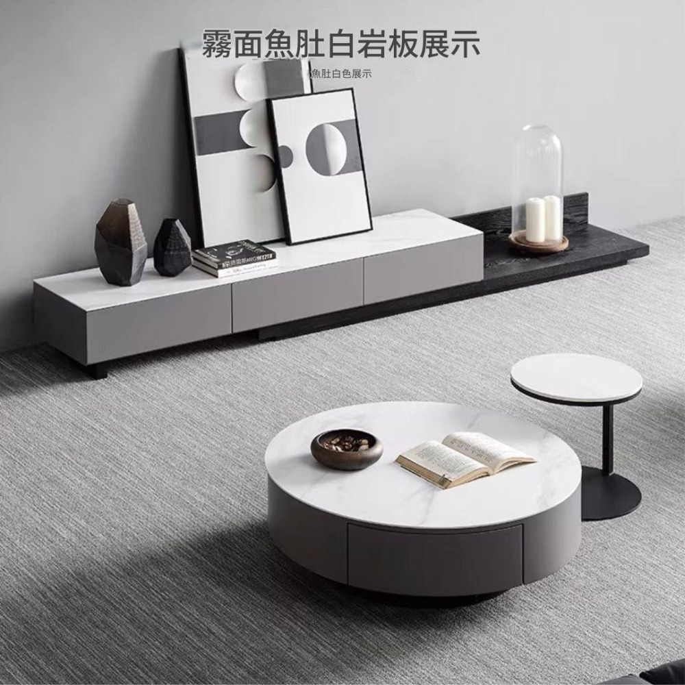 NICO|採用耐磨耐熱耐刮易清潔好打理通體岩板,食品級環保材質。電視櫃 180-360cm 自由伸縮,適應各種空間。圓几大中小三件套設計,兼具美感與收納。尼可家具提供專業配送安裝,現場體驗質感更安心。