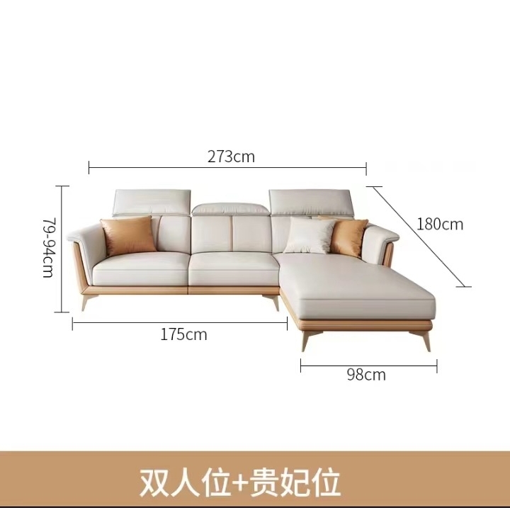 組合沙發:雙人沙發+貴妃 273*180*79/94cm